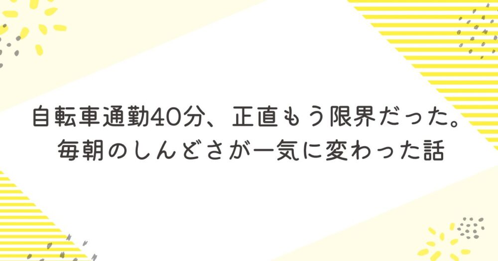 自転車通勤40分、正直もう限界だった。毎朝のしんどさが一気に変わった話