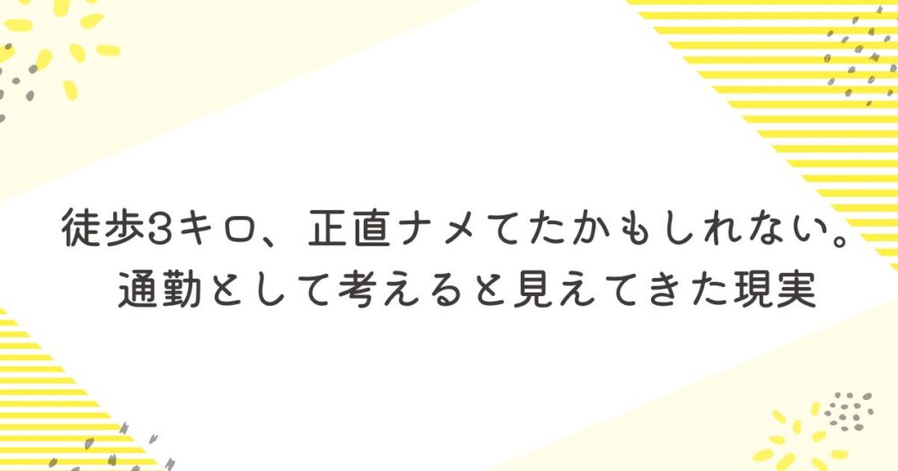 徒歩3キロ、正直ナメてたかもしれない。通勤として考えると見えてきた現実
