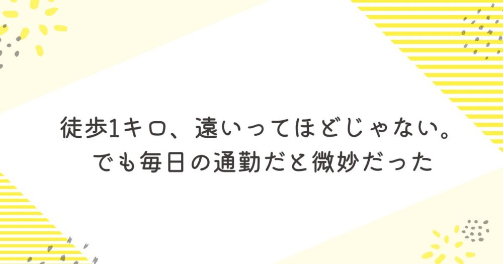 徒歩1キロ、遠いってほどじゃない。でも毎日の通勤だと微妙だった